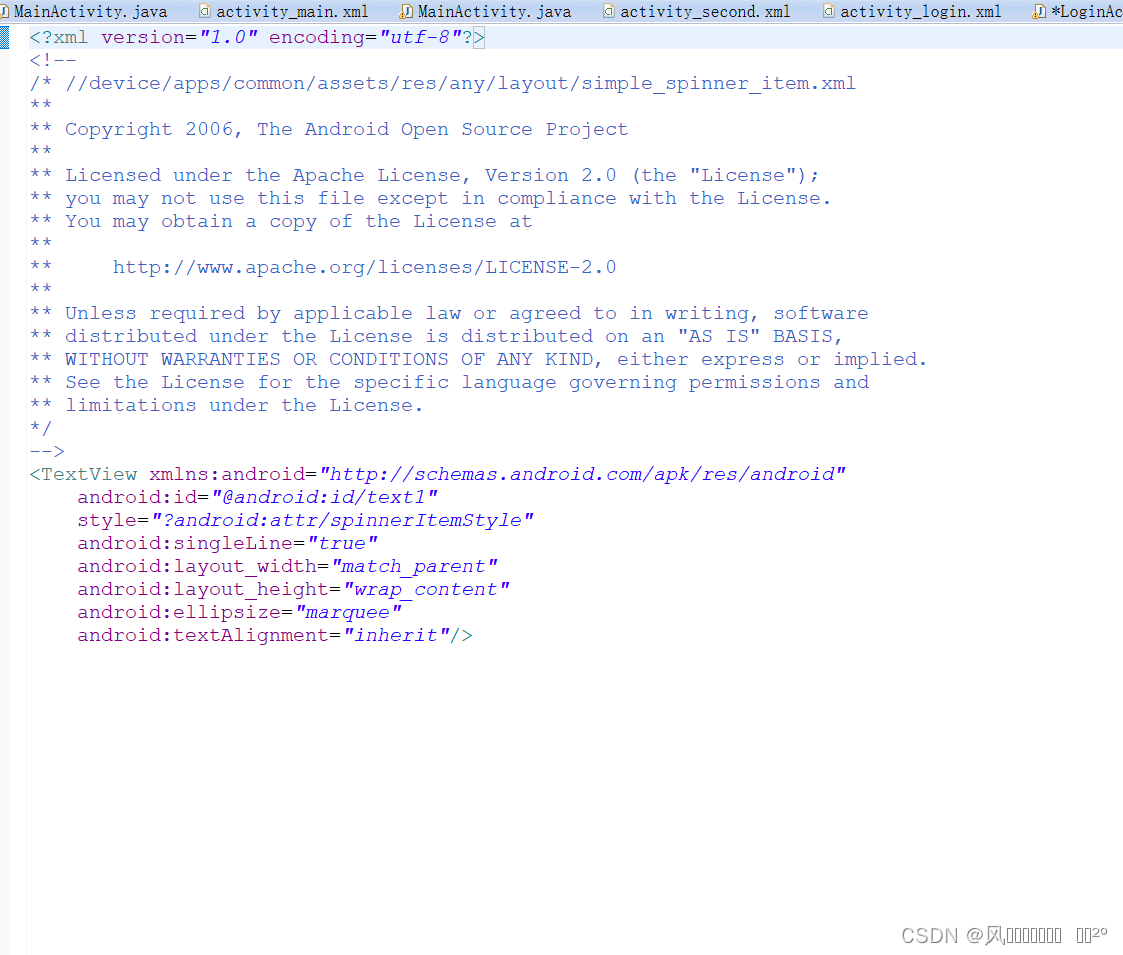 在此代码中先用android.R.layout.simple_spinner_item Ctrl右键打开 粘贴
