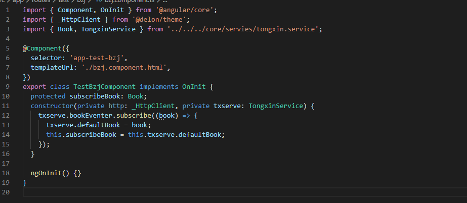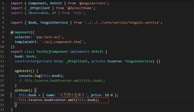 export class TongxinService {defaultBook: Book = { name: '《额尔古纳河右岸》', price: 20 };bookEventer: EventEmitter = new EventEmitter();constructor() {}