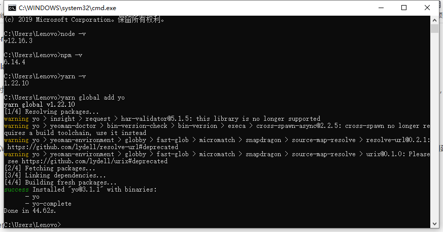 使用npm在全局范围安装:yarn global add yo。