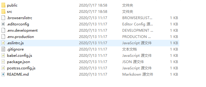 生成的新vue项目文件: