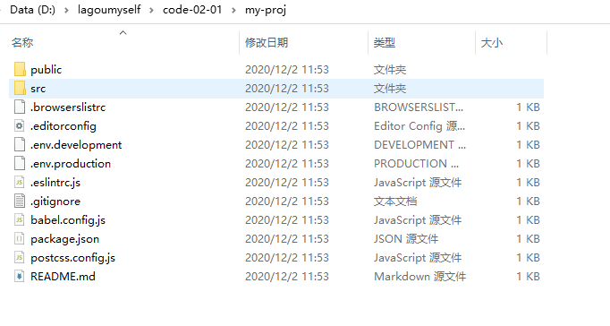 - 创建空文件夹(my-proj)根据模板生成对应项目文件: