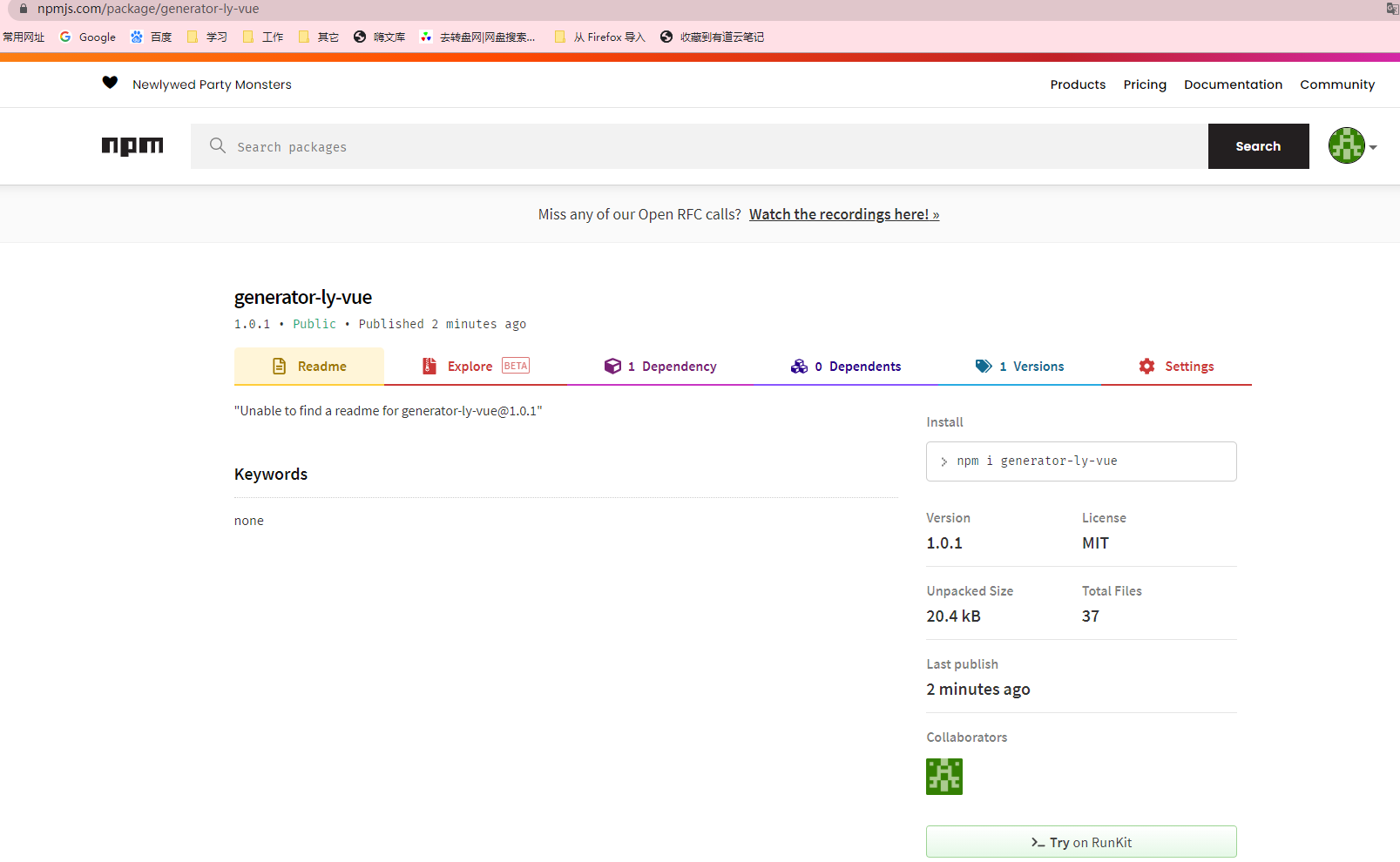 去npm官网看看刚刚发布的模块:
