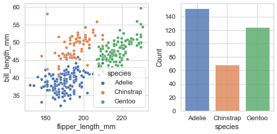 sns.scatterplot(data=penguins,x="flipper_length_mm",y="bill_length_mm",hue="species",ax=axs[0])