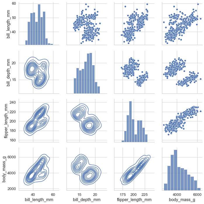 g.map_lower(sns.kdeplot) #左下角做等高线图