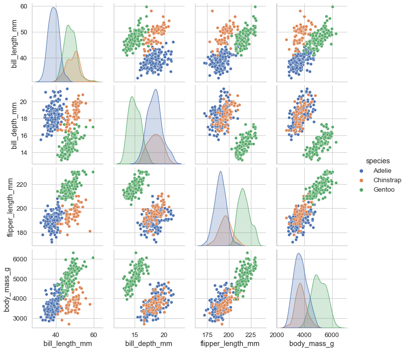 g = sns.PairGrid(penguins, diag_sharey=False)
