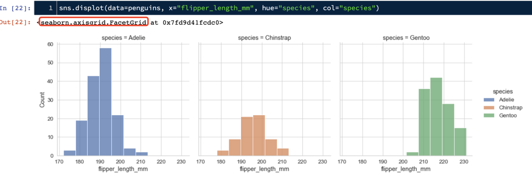 此时,通过seaborn.axisgrid.FacetGrid对象作图,以displot为例,