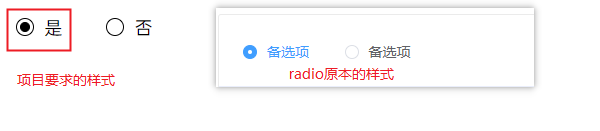 需求:项目中的radio的样式和颜色和 的样式有区别,如何改变呢?通过单纯的修改css可能达不到效果,需要借助html。