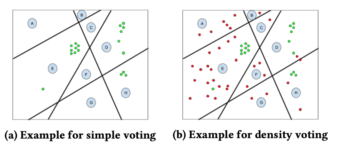 得到用户特征向量后,利用 LSH 对用户进行映射,然后基于种子用户的个数进行投票选出哪些区域,并取区域内用户作为扩展用户。