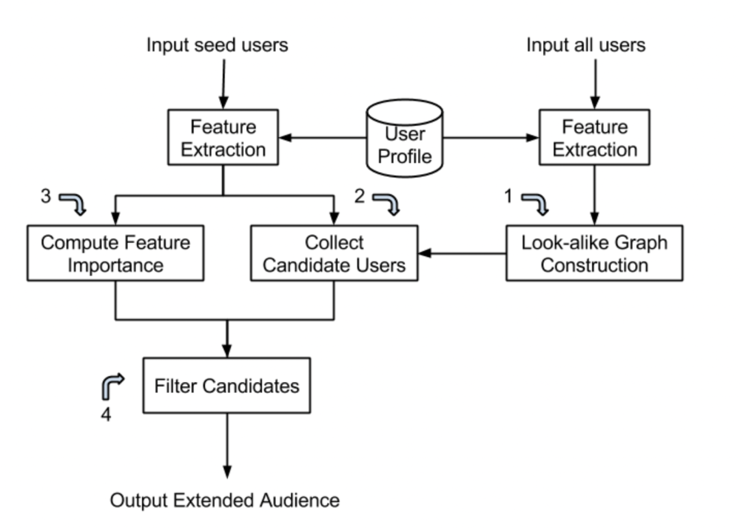 Linkedin 在 KDD 16 上发表了他们的 look-alike 系统,其架构如下图所示: