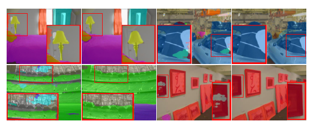 图2是SETR在ADE20K数据集上的分割效果,左侧列为FCN分割效果,右侧列为SETR的分割效果。可以看到,SETR分割效果要明显优于FCN。