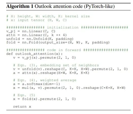 如上图所示,Outlook attention简单,高效,易于实现。它的主要创新点就是: