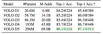模型缩放有助于提升模型性能,比如VOLO-D1到VOLO-D2可以带来1%的性能提升,VOLO-D5可以带来额外的1%提升;