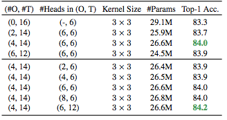 上表对比了,Outlooker数量与头数的影响对比,从中可以看到: