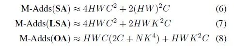 可以看到,当C=384,K=3,N=6时,因为,,所以outlook attention在计算资源利用上更高效。