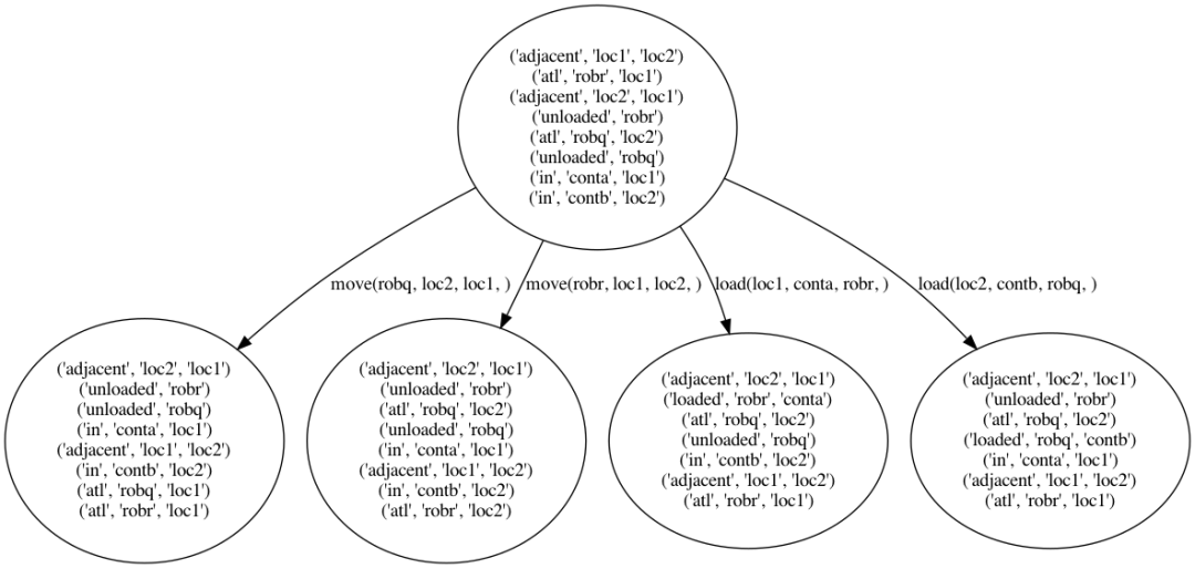得到的解决方案是一系列操作(action),当应用这些操作时,会在一个或多个步骤中将初始世界状态转换为目标状态。