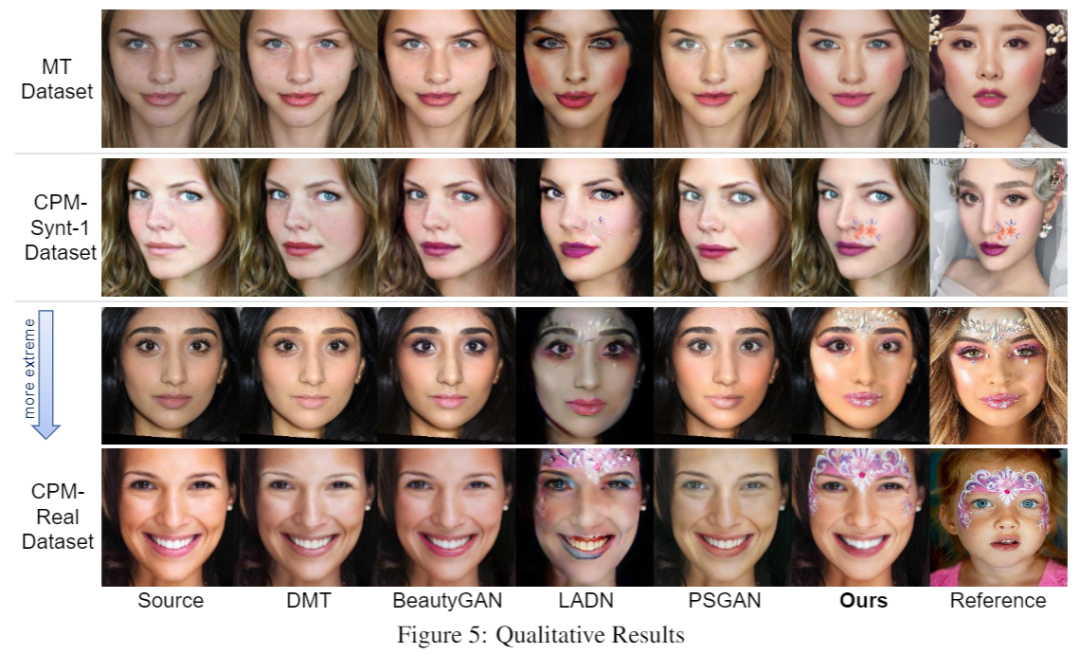 (3) 我们引入了新的妆容迁移数据集,其中包含了在以前的数据集中没有考虑到的极端风格