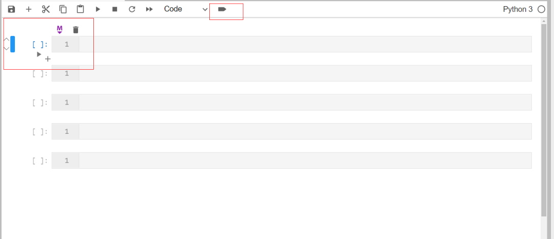 利用pip install jlab-enhanced-cell-toolbar完成安装之后,再次启动jupyter lab时,就会发现每个鼠标悬浮的单元格附近新增了一些快捷键,且页面顶端工具栏也新增了标签样式的小图标: