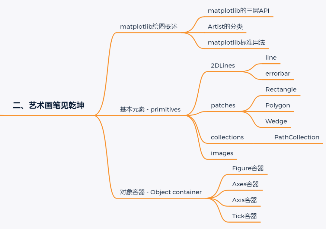 第二回是这个数据可视化教程中最重要的一个章节,整个章节都围绕Artist对象展开。Artist对象在matplotlib宇宙中是一个极为重要的概念,实际上我们在做可视化时几乎接触到的所有对象元素都属于artist对象。