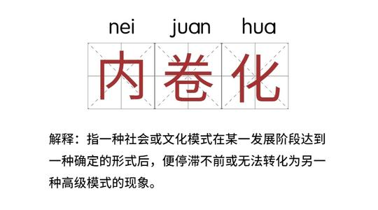 内卷是指恶性竞争,为了把同行挤走而做的努力叫做卷。比如说我明明没那么多工作,我就非要996让老板觉得我很勤奋,有的同事就会觉得我不跟着996就会被炒鱿鱼,我也必须996。又或者是你网上写软文,本来行价假如500一篇,你说我300也可以写!然后有人不服了说100我也可以!然后肯定有人说50也行,然后甲方不愿意出钱了。变成大家都要几块钱写一篇软文。内卷作为恶性竞争,这种努力甚至会损害自身长久的利息。