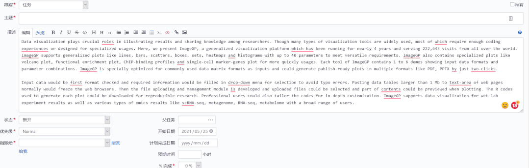 用于校正邮件时需要安装火狐插件,安装好后,任何一个在线的文本编辑器如邮箱写正文的地方都可以使用Grammarly进行校正。下面展示的是在一款任务管理工具中的校正。红色的线标红可能错误的文字,点击后提示修改方式。如果认同修改,则一键点击替换。不认同修改,则忽略。