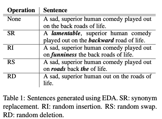 EDA是一种简单有效,也被广泛应用的文本增强:随机插入,删除,替换token从而在文本数据中加入噪声。EDA的改进版UDA则利用简单的增强,包括回译,或者根据TF-IDF替换词等方法获得增强数据,再最小化增强后未标注样本和原样本的一致性损失函数来帮助半监督学习。