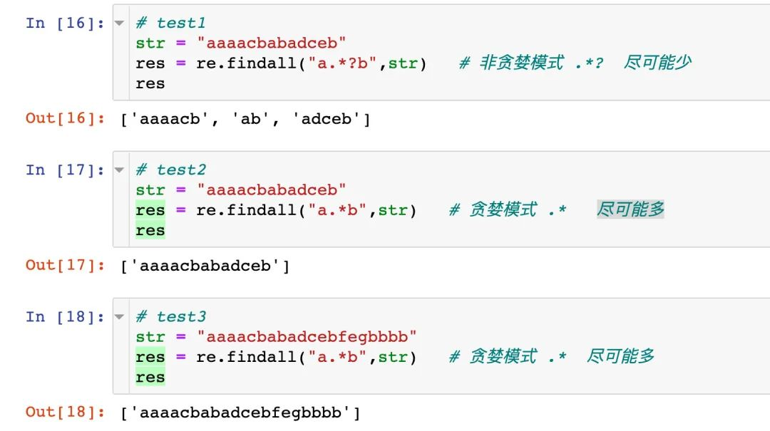 ?,当匹配到aaaacb已经达到了要求,停止第一次匹配;接下来再开始匹配到ab;再匹配到adceb;所以存在多个匹配结果在贪婪模式中,程序会找到最长的那个符合要求的字符串