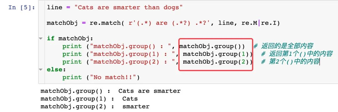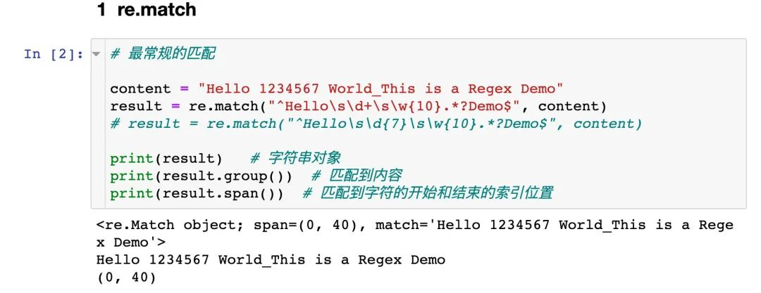 该方法的结果是返回一个正则匹配对象,通过两个方法获取相关内容: