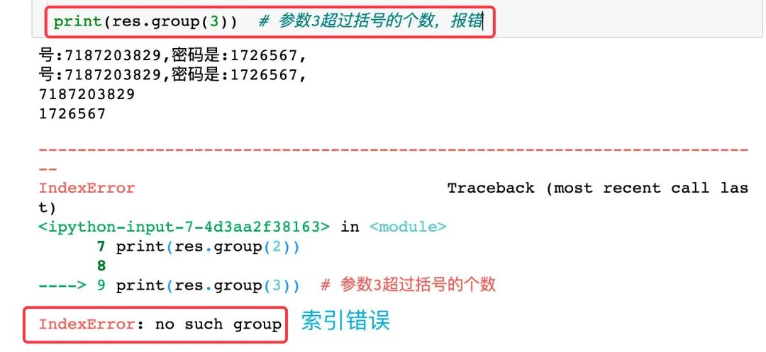 group(N) 中的参数N不能超过正则表达式中括号的个数,若超过则报错: