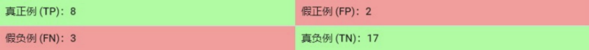 我们根据图 1 所示的结果来计算精确率和召回率值: