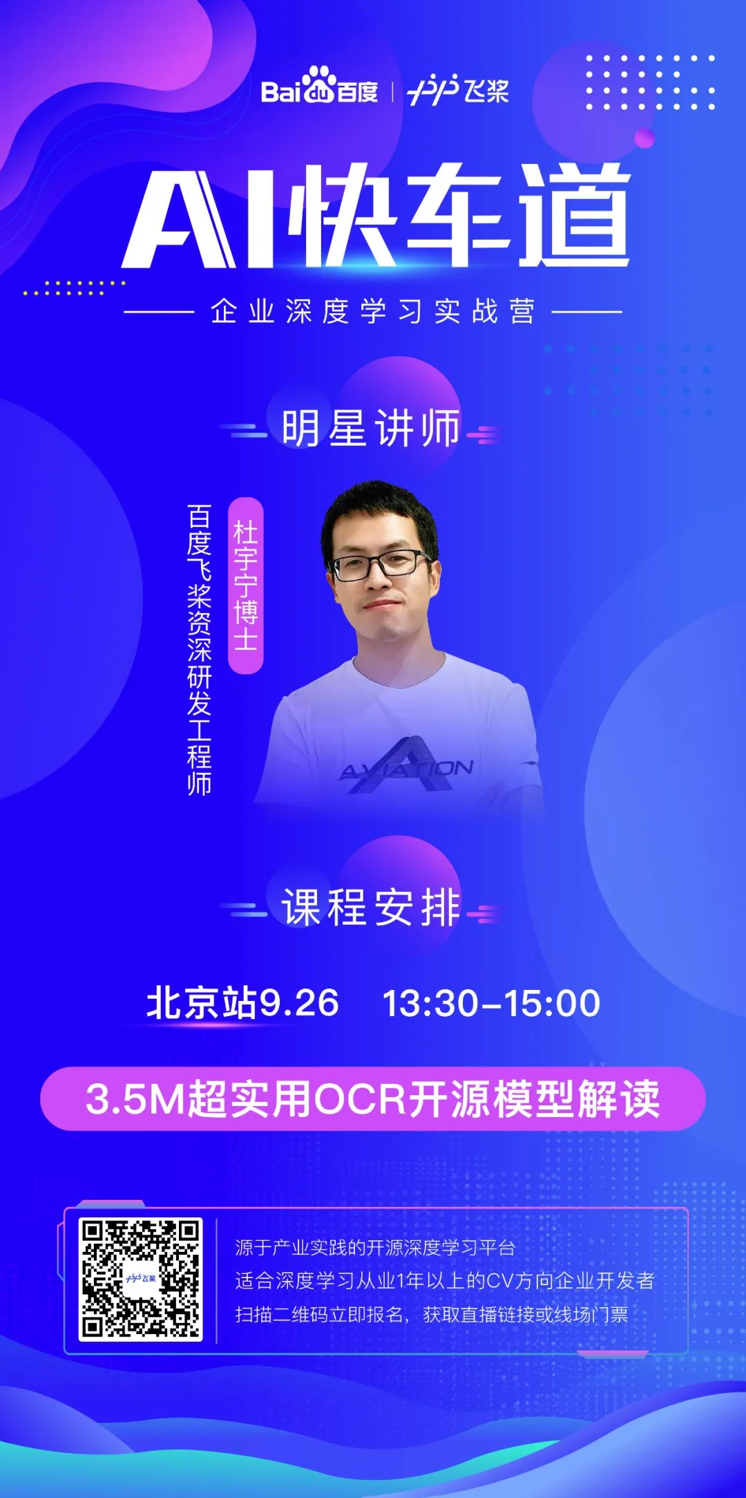 9月26日,飞桨将举办OCR方向的线下沙龙活动,欢迎北京OCR方向的开发者们,我们相聚中关村。