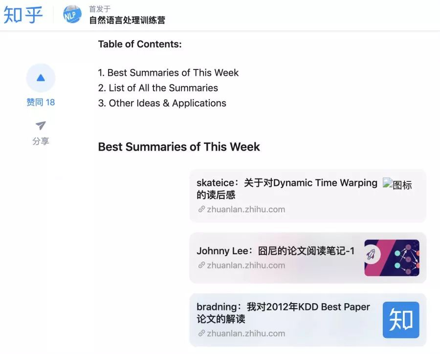 通过在知乎上发表相关技术文章进行自我成果检验,同时也是一种思想碰撞的方式,导师会对发表的每一篇文章写一个详细的评语。万一不小心成为一个大V了呢?虽然写文章的过程万分痛苦,学习群里半夜哀嚎遍野,但看一看抓着头发写出来的文章结果还是非常喜人的!看着自己收获的点赞数,大家都默默地感谢起导师们的无情!