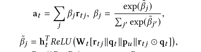 给定一个用户,在每个待预估广告展示之前,用户通常都会与源域的新闻有交互记录。用户交互过得新闻的内容与待预估广告之间有关联关系,则建模用户在源域中的兴趣是很有意义的。在对序列数据进行建模时,文中的item- level attention的方法如下: