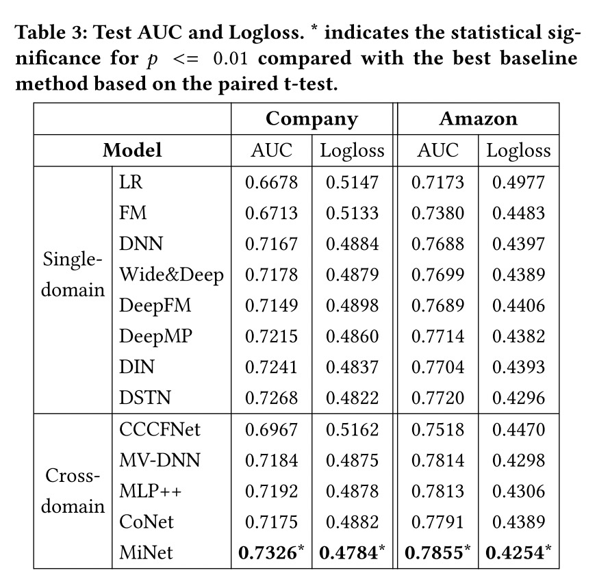 本⽂提出了Mixed Interest Network (MiNet)来进⾏跨域的点击率预估,并取得了不错的实验效果。跨域预估的主要优势是能够对冷启动问题起到⼀定的帮助,如果⽤户在⽬标域中的⾏为⽐较少的话,可以通过在源域中的⾏为来进⾏辅助的预估,提升冷启动的效果。