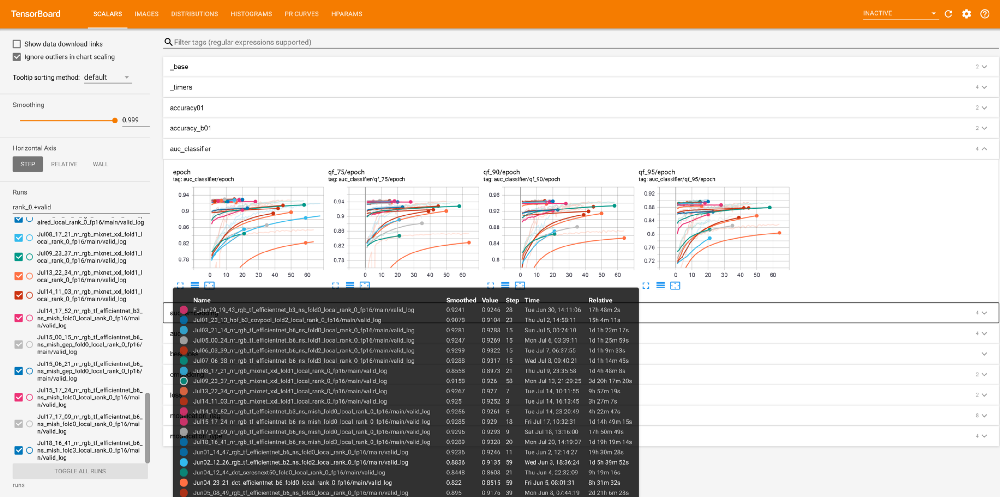 对于少量实验和非分布式环境,TensorBoard是一个黄金标准。自版本1.3以来,PyTorch就完全支持它,并提供了一组丰富的特性来管理试用版。还有一些更先进的基于云的解决方案,比如Weights&Biases、[Alchemy](https://github.com/catalyst team/alchemy)和TensorBoard.dev,这些解决方案使得在多台机器上监控和比较训练变得更容易。