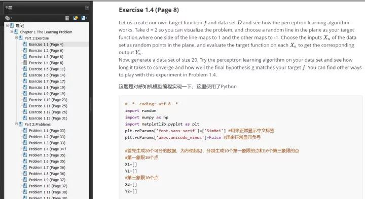 针对这个问题,有位清华大学的硕士生秦臻在学习的过程中把《Learning From Data》的习题都整理了一遍,方便自己以后查阅和他人参考。前后历时半年多,除了第六章,第八章和第九章少部分习题以外,其他所有习题均已完成。经作者同意,在本站予以公布。