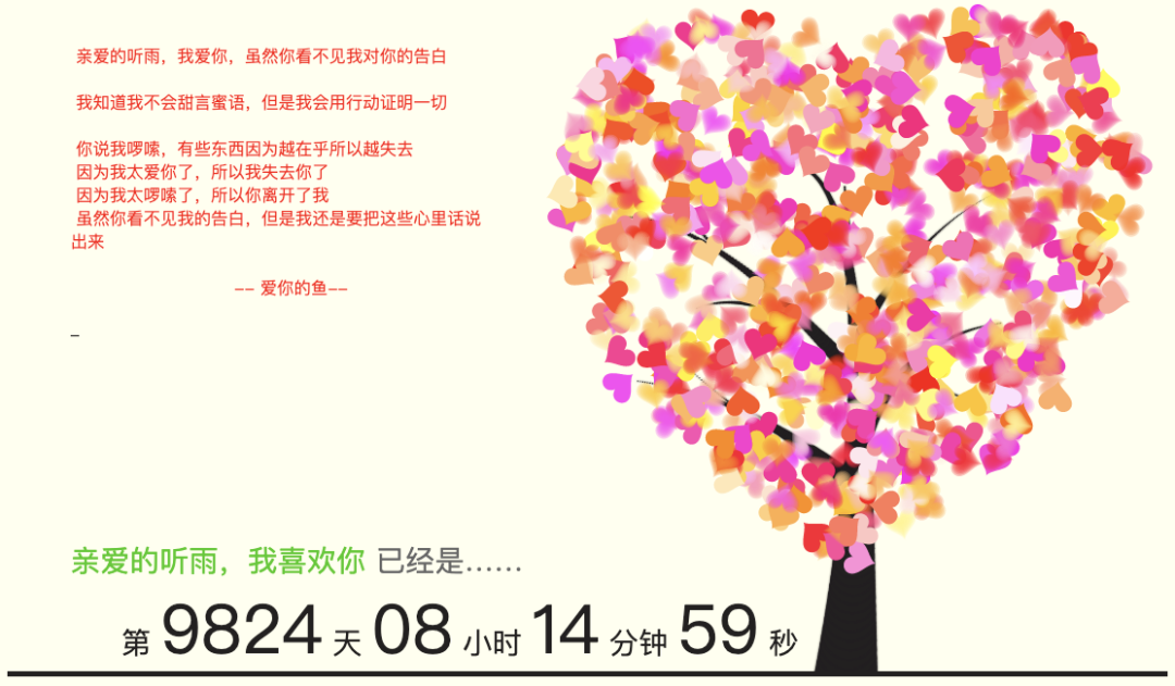 这是一个很小的jQuery+HTML5静态页面,可以用来庆祝相恋的周年纪念日,相信会不少女孩子会被里面真诚的话语给打动