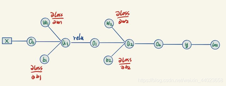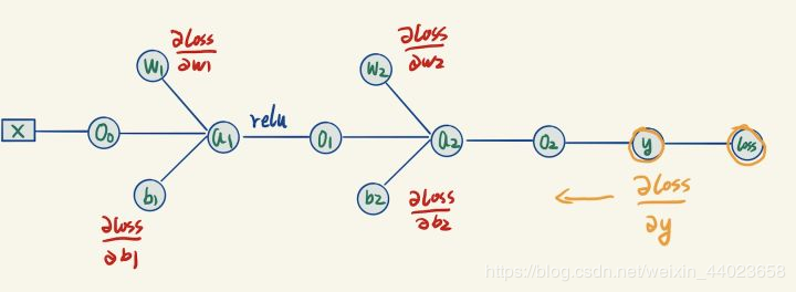 既然我们想要用参数的梯度来更新参数,那么我们需要求出最后的节点输出loss关于每个参数的梯度,求梯度的方法是反向传播。