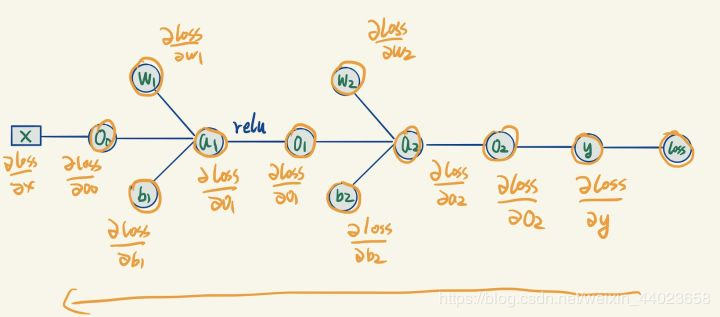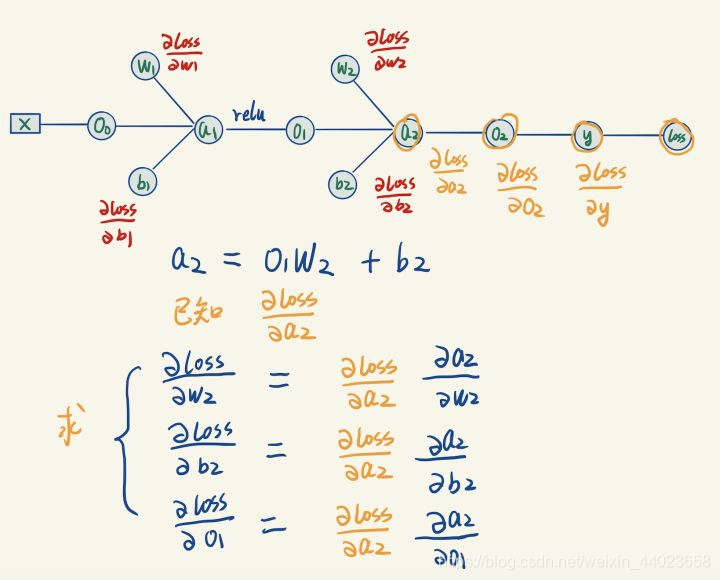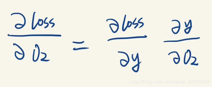 但是我们想要的是loss关于O2的梯度,这里应用到了链式求导法则: