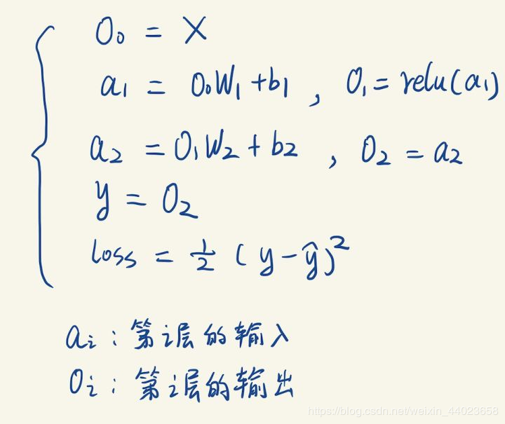我们还需要定义一个损失函数Loss,用来衡量我们的输出结果与实际结果的误差。这里用的是均方误差MSE,表达式如下