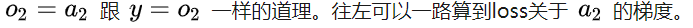 loss关于y的梯度在之前已经求出来过了,然后就可以求出loss关于O2的梯度。