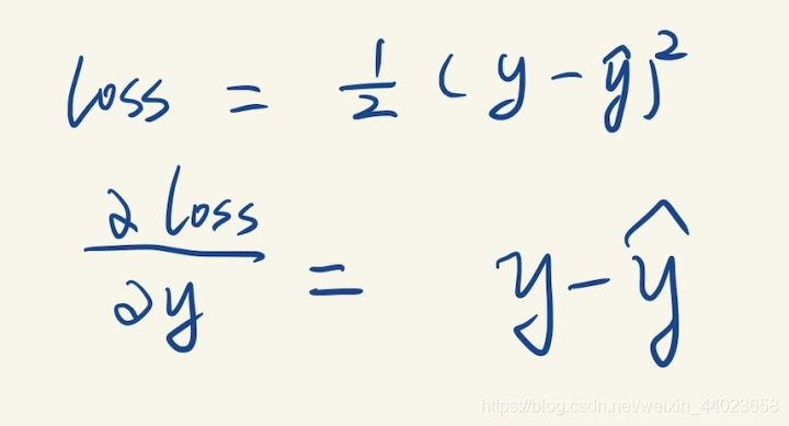 先从最右边开始,观察到Loss节点只有一条边跟y连着,计算loss关于y的导数(这个求导只有一个变量y,怎么求不用我解释了吧):我们就求得了损失函数关于输出y的导数,然后继续往左边计算。