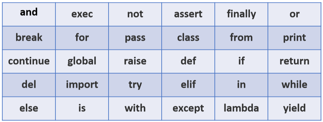 保留字(关键字)不能用作常数或变量,也不能作为任何其他标识符,需要注意的是,所有 Python 关键字只包含小写字母。