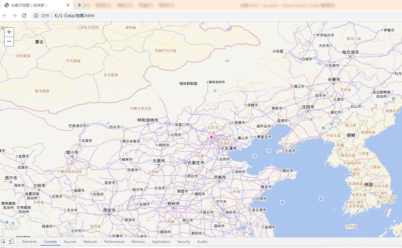 2、Chrome与360浏览器默认的空间参考不一致,下图为在Chrome中的坐标系,