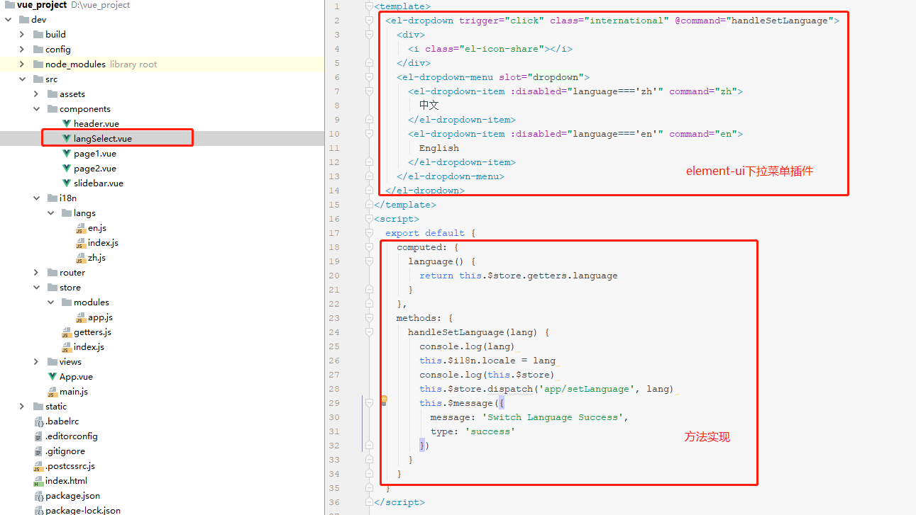 export default {hello: '你好',pap: '你好vue'}5.语言状态切换状态管理功能实现
