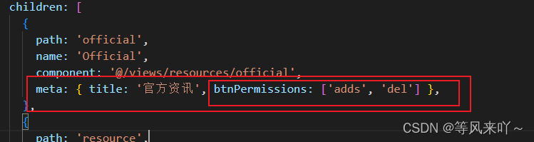 这里 我用的是直接从 路由数组中拿到 该页的 按钮权限标记
