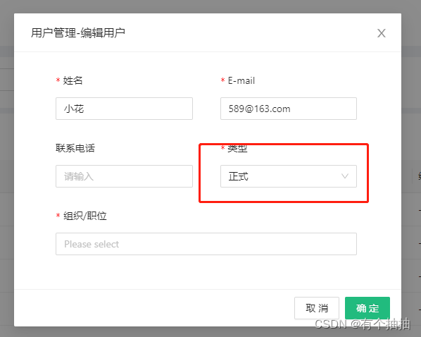 问题:点击【编辑】弹框后,回显数据时候有误。如图
