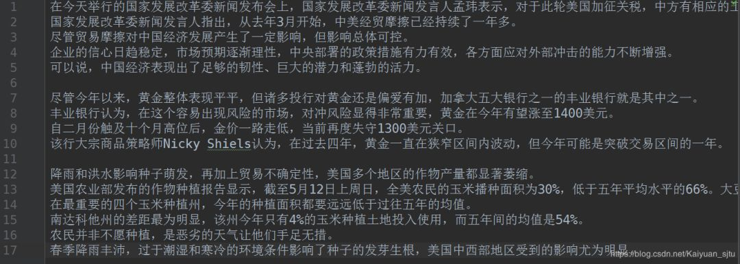 因为我之前下载的词表是中文的,所以就网上随便找了几篇新闻进行测试。结果如下这是其中的一个样例:
