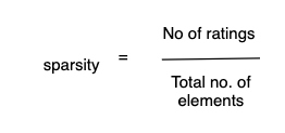 矩阵的每个单元格都由用户对电影的评分来填充。这个矩阵通常表示为一个scipy 稀疏矩阵,因为许多单元是空的,因为没有对特定的电影进行任何评级。如果数据是稀疏的,那么协同过滤就不能很好地工作,因此我们需要计算矩阵的稀疏性。