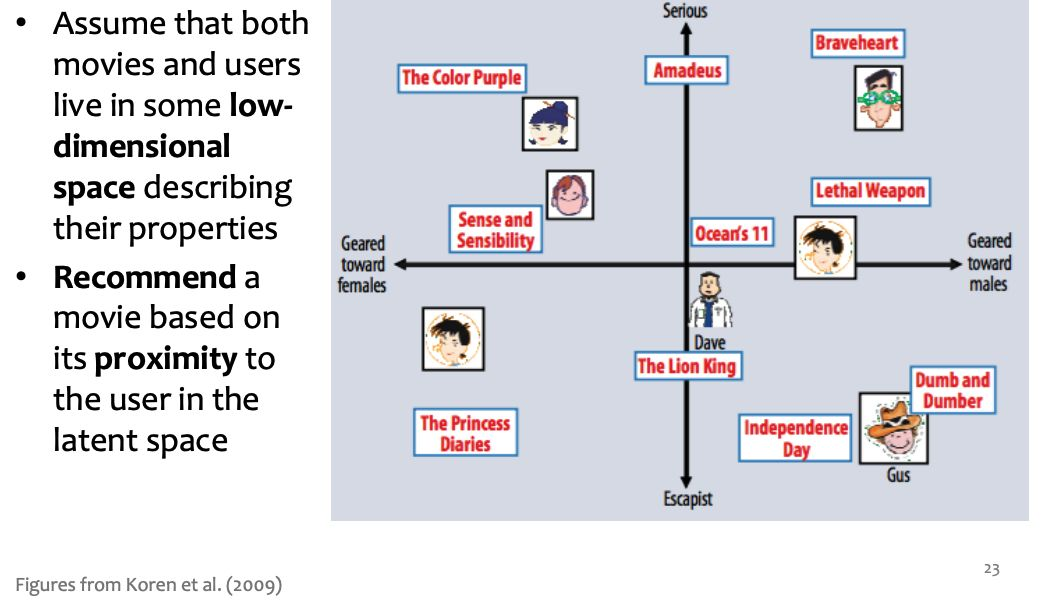 用户评分是由人生成的电影的特征。这些特征是可以直接观察到的,我们认为它们很重要。然而,也有一些特定的特征是不能直接观察到的,但在评级预测中也很重要。这些隐藏的特征被称为潜特征。