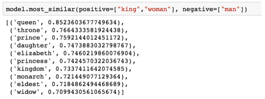 国王 - 皇后 = 男人 - 女人